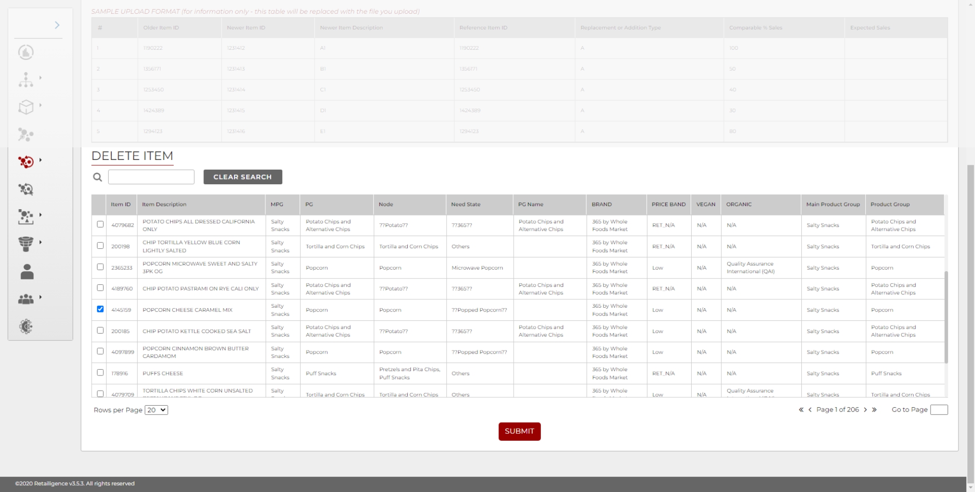 Elimina articolo consente all’utente di rimuovere articoli dall’assortimento, nel progetto Retailigence.